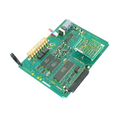 This Toshiba card has an option serial interface and external paging unit. This card interfaces with the SMDR, local terminal or external modem. It contains relay control, alarm sensor, door lock control, BGM mute control, tape recorder control or night ring relay.